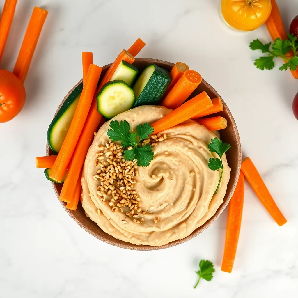 - Arrange the vegetable sticks on a platter alongside a small bowl of hummus.