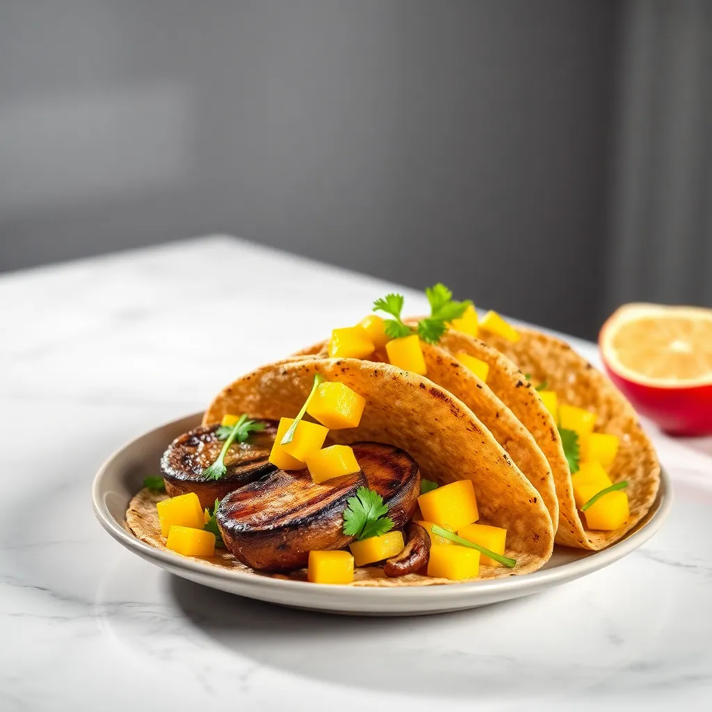- Assemble the tacos by placing grilled mushroom slices on each tortilla. Top with a generous spoonful of mango salsa and add avocado slices if desired.