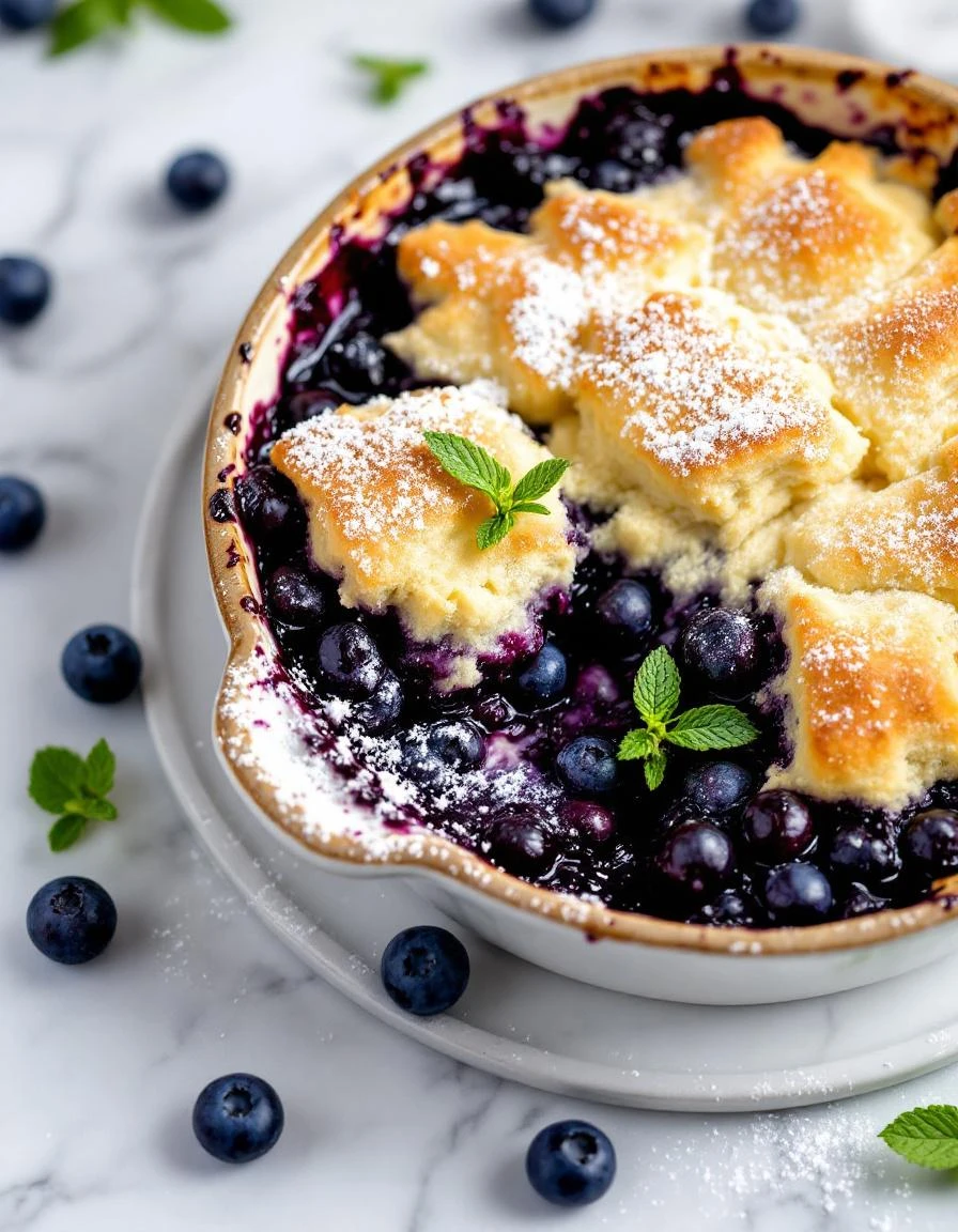Making blueberry cobbler is about dealing with sticky, juicy berries that want to escape their pan. You’ll be stirring the fruit with sugar and lemon juice, watching it ooze and bubble over the stove. The crumble topping gets mixed quickly, just enough to keep it crumbly but not pasty.