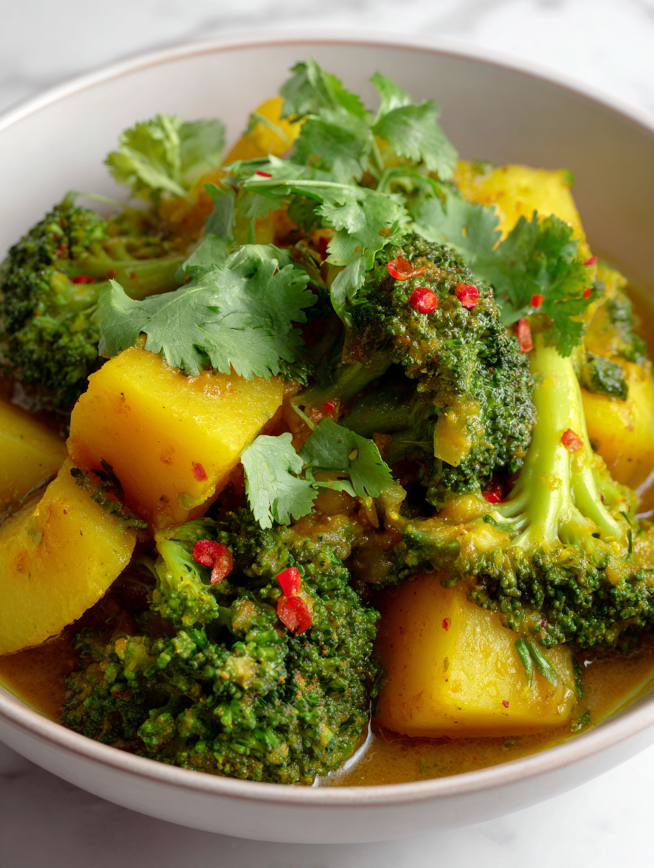 I love how this dish transforms everyday pantry staples into something warming and satisfying. It’s especially good when I need comfort but don’t want to spend hours fussing. The aroma of garlic and cumin filling the air, the tender potatoes soaking up the curry sauce, and the vibrant broccoli adding a pop of color—it all just feels right, a little chaotic, a little nostalgic, but ultimately honest.