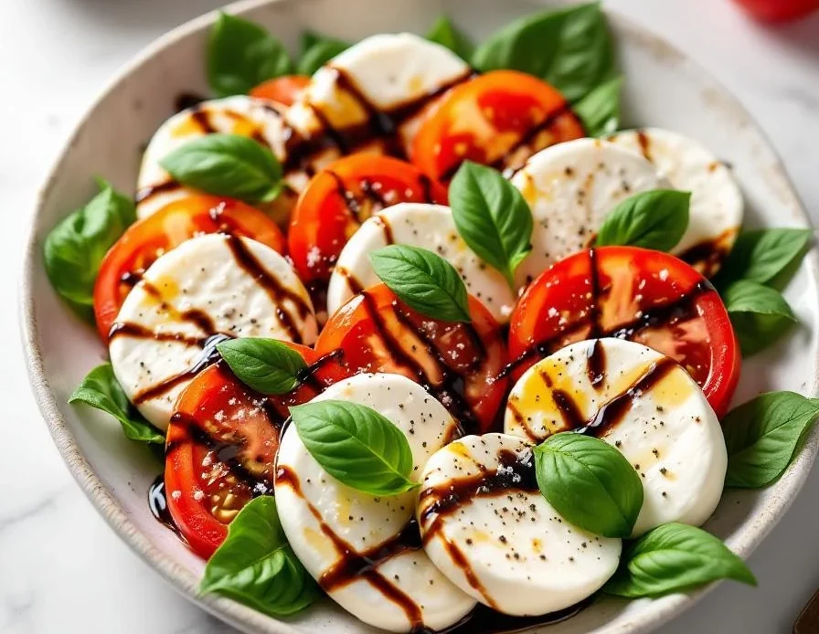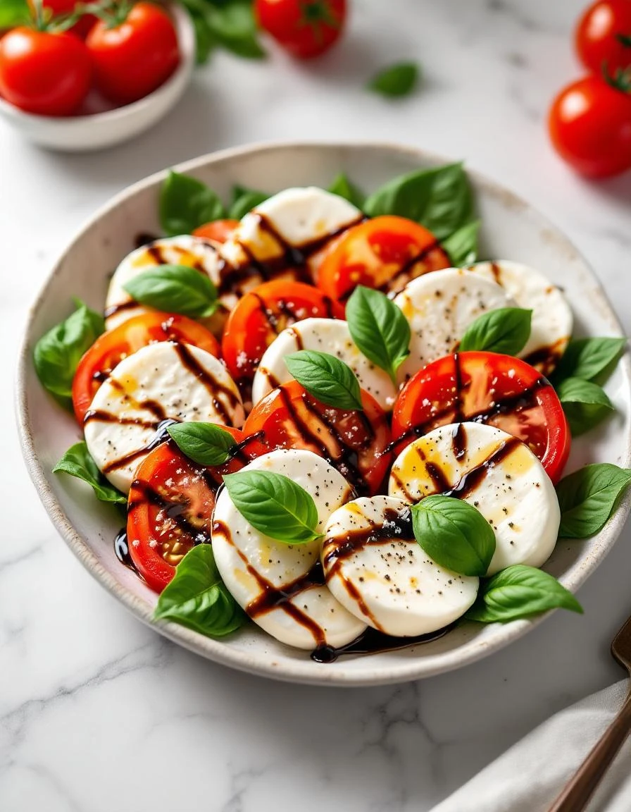 - If desired, finish with a light drizzle of balsamic glaze for a touch of sweetness and tang, adding a glossy finish to the salad.