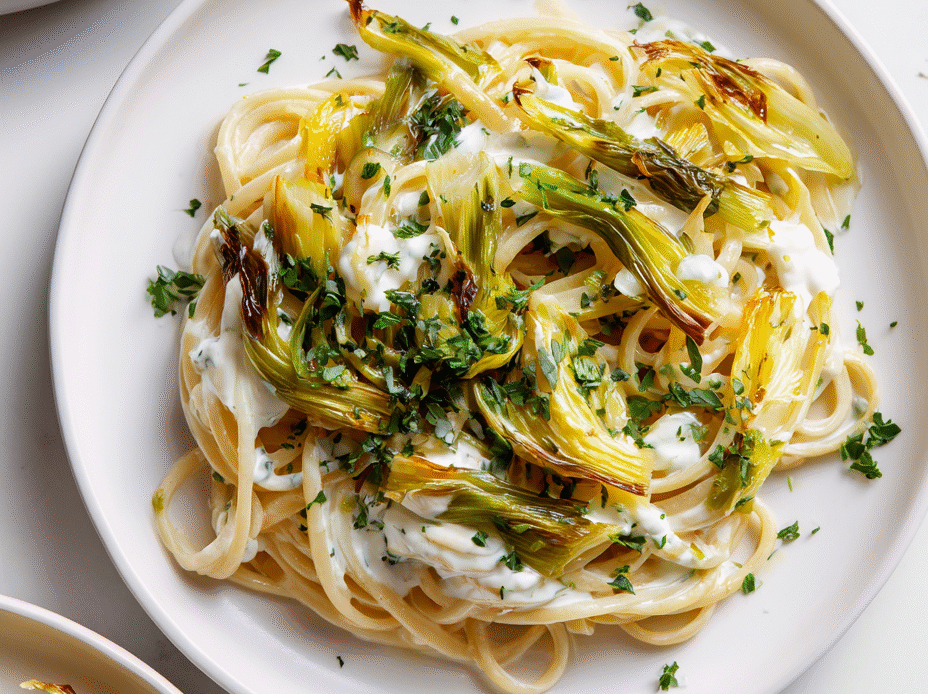 There’s something almost meditative about slowly caramelizing leeks. Watching their pale green edges turn golden and smell that sweet, earthy aroma makes the whole kitchen feel calmer, more grounded. I’ve always loved how humble ingredients like leeks can be transformed into something rich and comforting when given time and patience. This creamy leek pasta is a perfect example—simple, honest, and deeply satisfying.