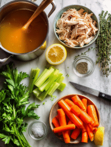 - Chicken broth: Rich and soothing, it forms the soup’s base. Use homemade or store-bought, but opt for low-sodium if you want control over salt.