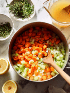 - Add the diced carrots and chopped celery to the pot. Cook for another 5 minutes until they soften slightly and release a sweet aroma.