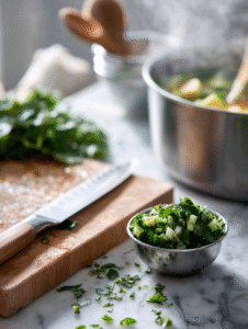 8. Chop the fresh herbs and stir them into the soup, allowing their aroma to infuse the broth with fresh, herbal notes.