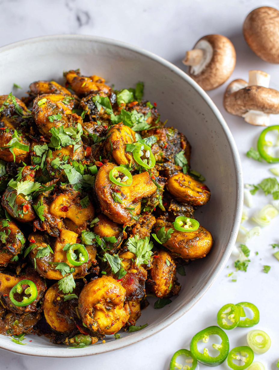 Mushroom bhaji is a dish that celebrates the earthy, umami richness of mushrooms, transforming simple ingredients into something deeply satisfying. I love how the mushrooms’ texture evolves during cooking—starting firm and then softening to soak up all the spices and flavors, almost like a slow dance in the pan.