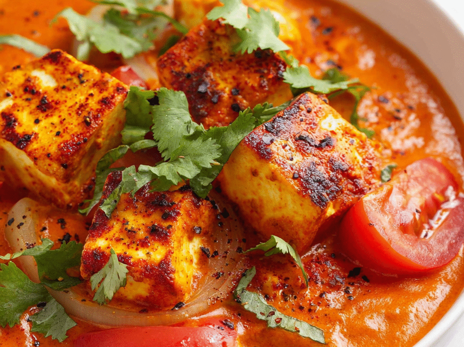 - Vegan: Swap paneer for firm tofu. Tofu absorbs spices well but won’t have the same creamy bite or charred edges.