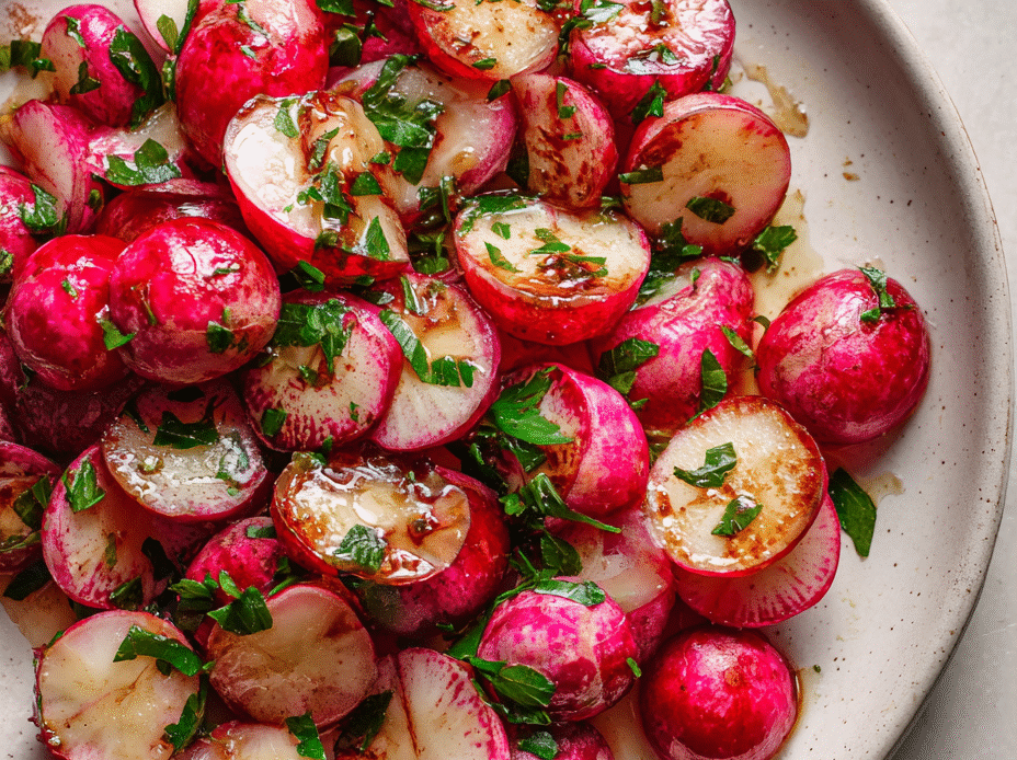 Using sautéed radishes with butter as a way to rediscover their underrated sweetness and texture, turning what’s usually a crunchy, peppery root into a tender, buttery side that surprises and delights.