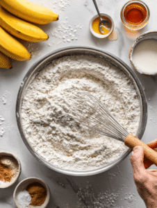 - Combine the dry ingredients—flour, cinnamon, nutmeg, and a pinch of salt—in a large mixing bowl, whisking until evenly blended. This creates a smooth, uniform dry mixture.