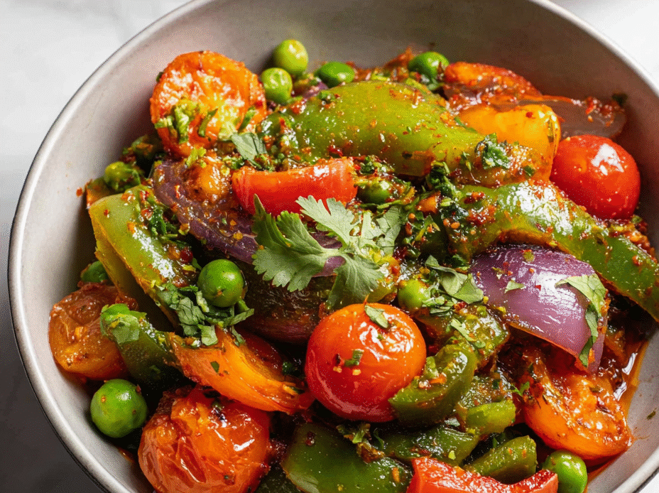 Once cooked, turn off heat and sprinkle fresh coriander. Let it rest uncovered for 2 minutes to deepen flavors. Serve immediately with rice or bread, ensuring vegetables retain their vibrant color and aroma.