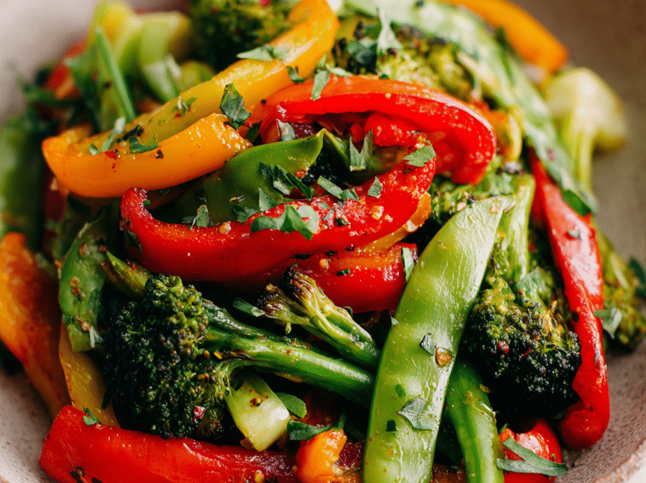 Adjust heat if veggies start to burn or stick—moderate heat prevents overcooking and keeps edges crisp.